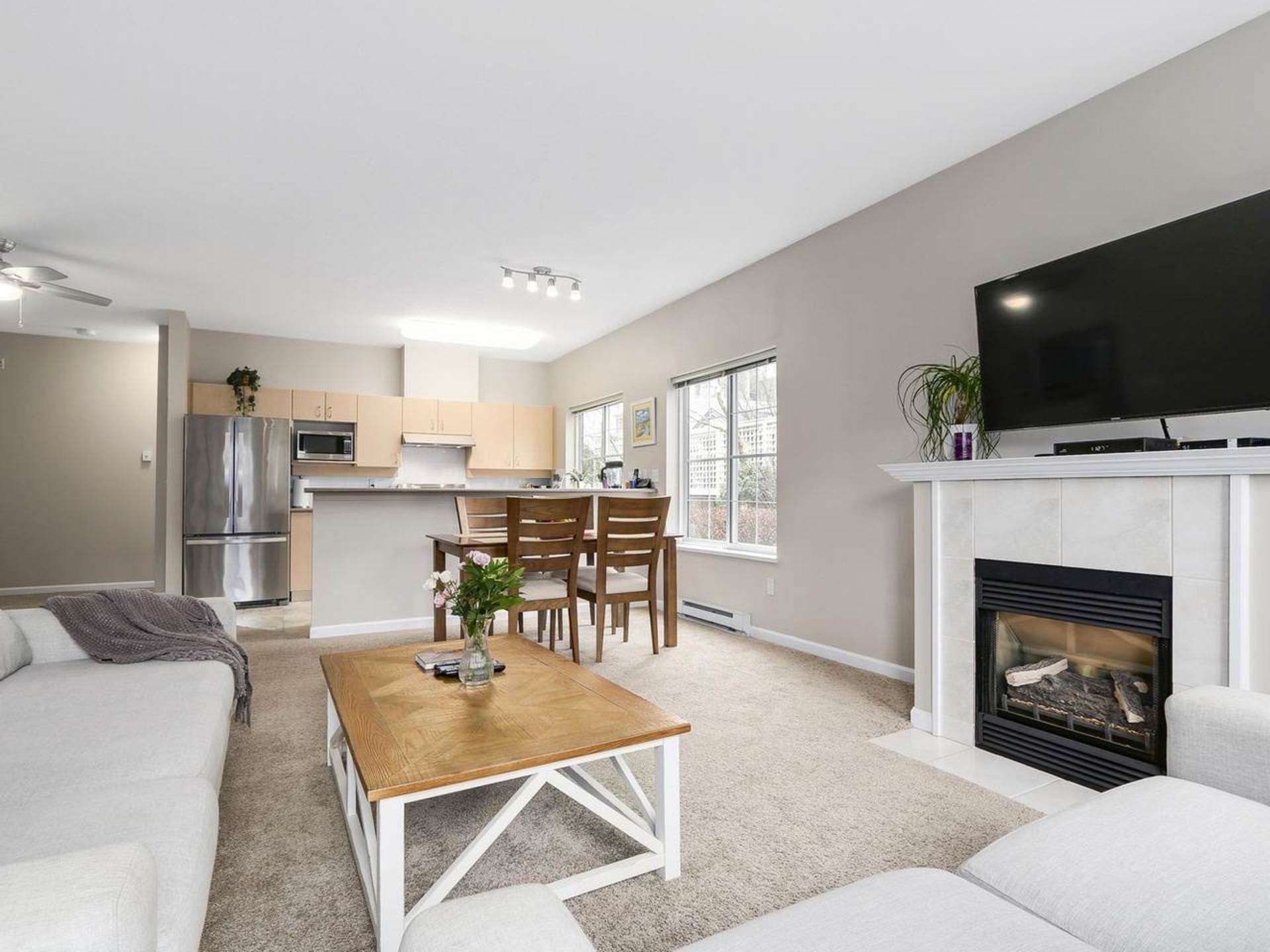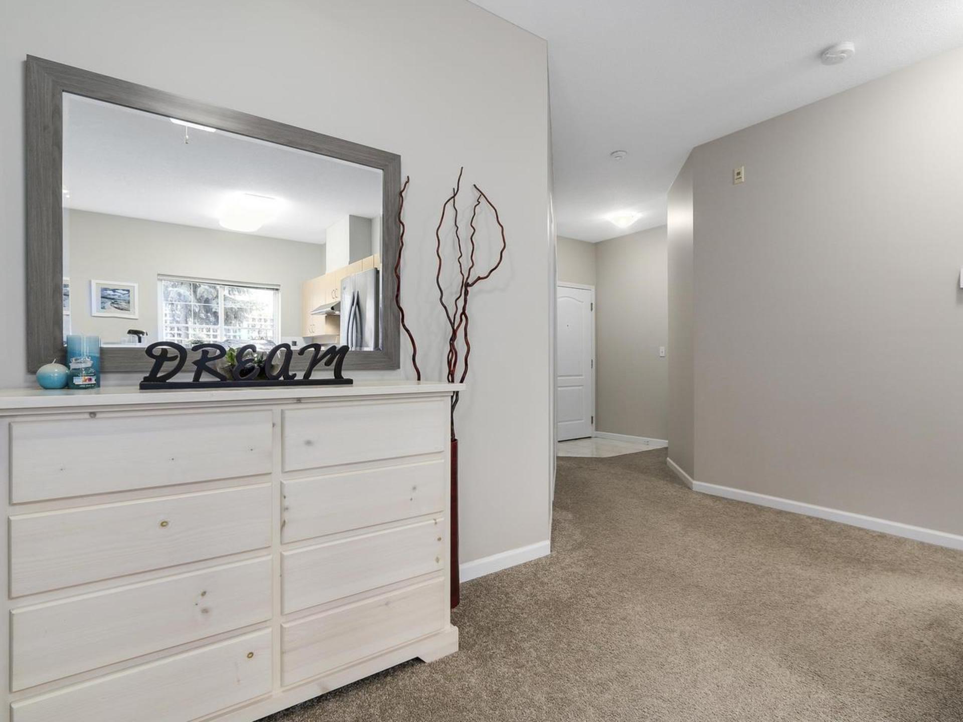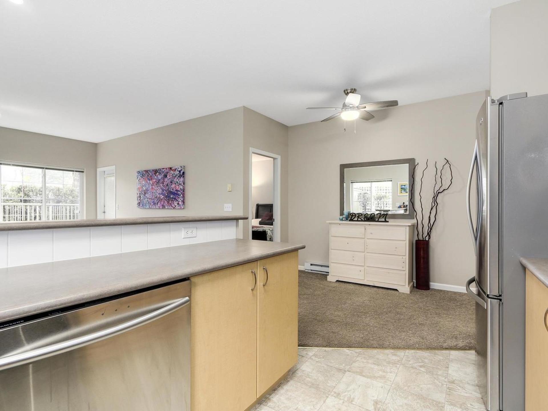 Welcome Home to this beautiful, bright and spacious 2 bdrm ground floor corner suite! This beautifully appointed unit is well cared for and is in a very well built and run complex. Open concept with lots of kitchen cabinets and eating bar, great floor plan, new appliances and new paint throughout. Great place to call home or have it as a solid investment as this building allows rentals. Excellent location - central yet private. Walk to shopping, bus, parks, and all amenities. If you treasure comfort and care-free living you will most likely be the next owner. Could the lucky buyer be YOU? Feel free to stop by at the open house Sat/Sun 18/19th of March, 2-4 or call to view. You will like what you see!